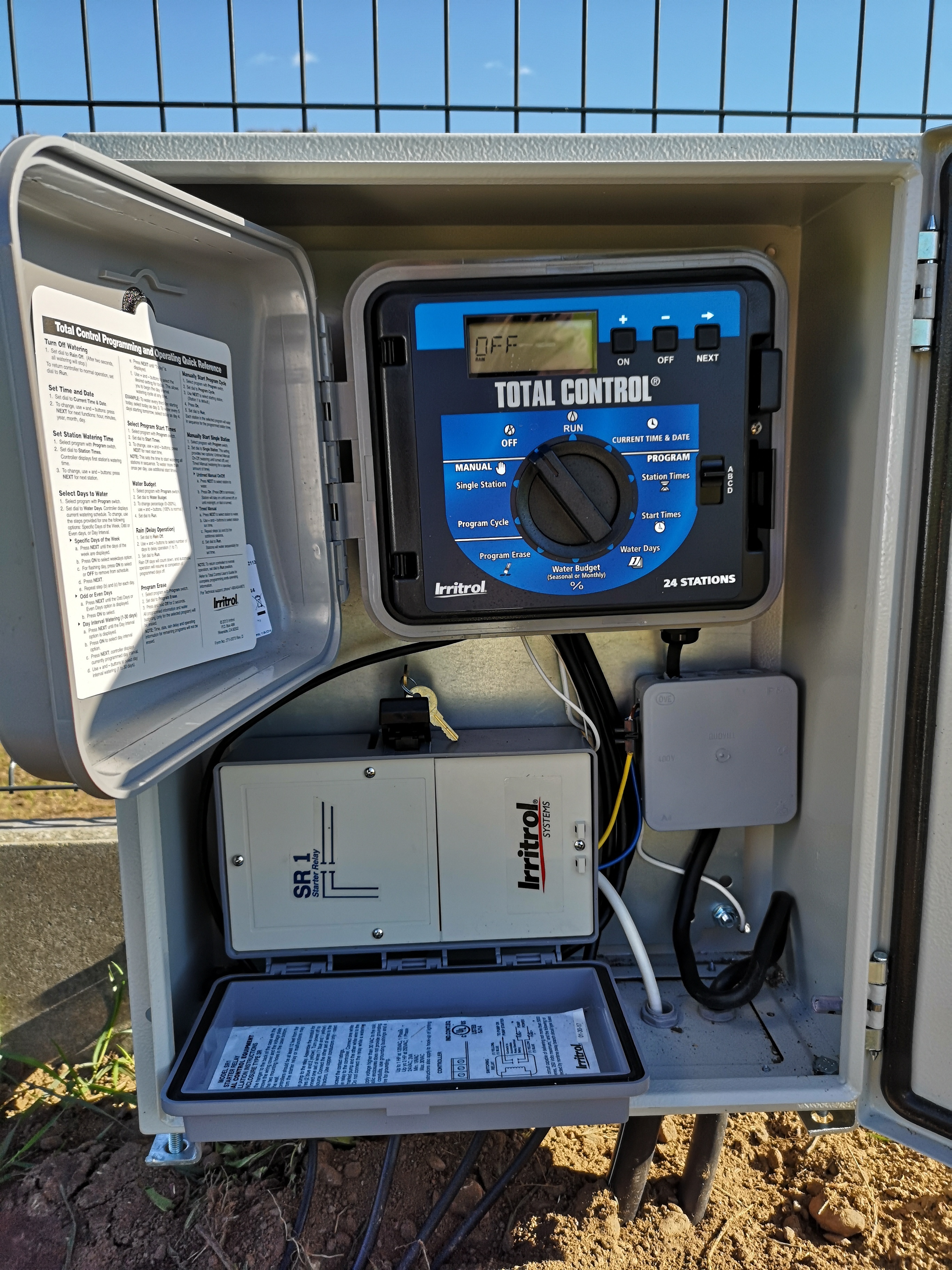 Tikmēr uzstādīšana ārpus telpām – uz sienas, staba vai pie kolektora – kļūst arvien populārāka izvēle, jo īpaši, ja kontrolieris atrodas tālāk no mājas vai citas ēkas, kurā varētu uzstādīt iekštelpu variantu. Uzstādīšana ārpus telpām bieži vien ir vienkāršāka – nav nepieciešams ievilkt garus kabeļus telpās, un laistīšanas kontroliera pieslēgšana kļūst ātrāka un efektīvāka. Šāds risinājums ir īpaši izdevīgs, ja sistēma ir lielā zemes platībā un vārstu kolektors ir tālu no mājas. Tomēr ir svarīgi atcerēties, ka laistīšanas kontrolieris jāizvēlas atbilstoši āra apstākļiem. Tam jābūt izturīgam pret mitrumu un ultravioleto starojumu, kā arī jābūt noslēgtam, izturīgam korpusam, kas to aizsargā no lietus, netīrumiem un citiem vides faktoriem. Kā arī ir nepieciešams nodrošināt drošu uzstādīšanu – kontrolieri ir jāpiestiprina stingri, lai tas nekustētos un nebūtu viegli bojājams.