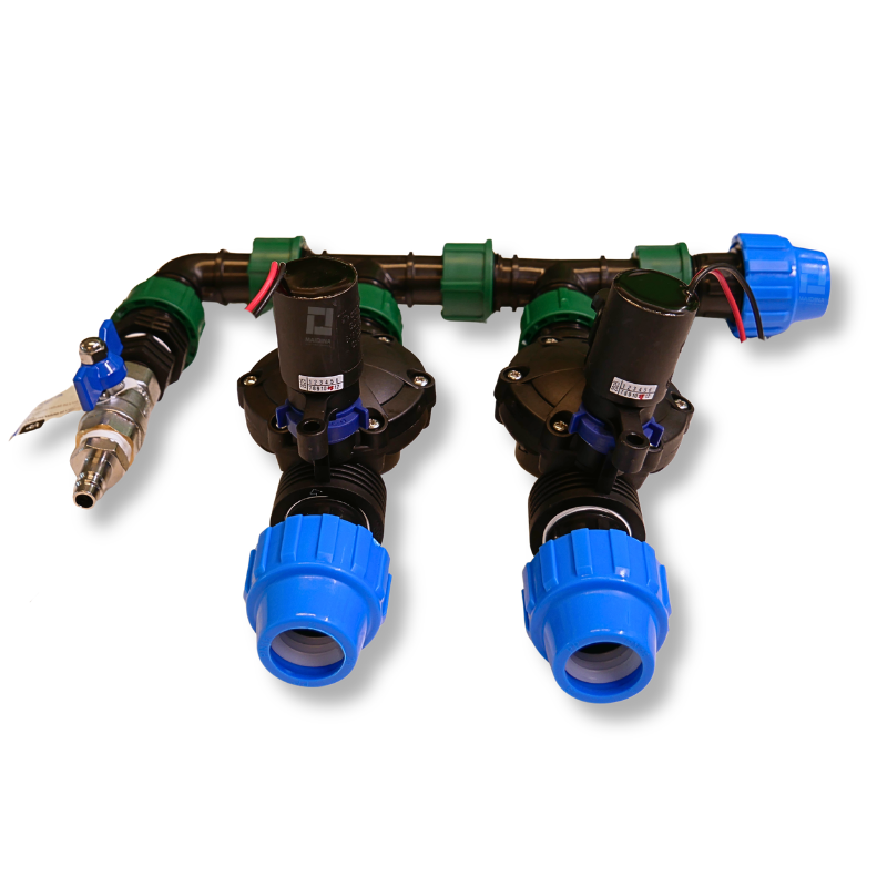 - Komplektā ietilpst: izpūšanas mezgls, 2 gab. GALCON DC elektromagnētiskie vārsti, 2 gab. kolektora trīsceļu savienojumi, 2 gab. OR nipeļi, ECO S 25 × 1 savienojumi.