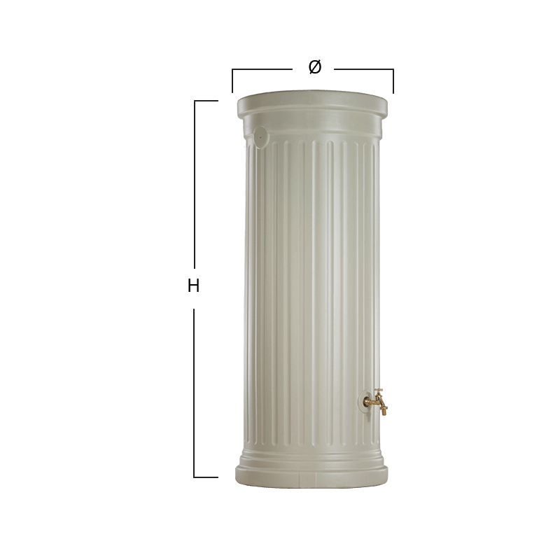 Šī smilšu krāsas lietus ūdens tvertne izceļas ar elegantu dizainu un īpaši stabilu konstrukciju, tāpēc tā ir lieliski piemērota gan dārzam, gan pagalmam.