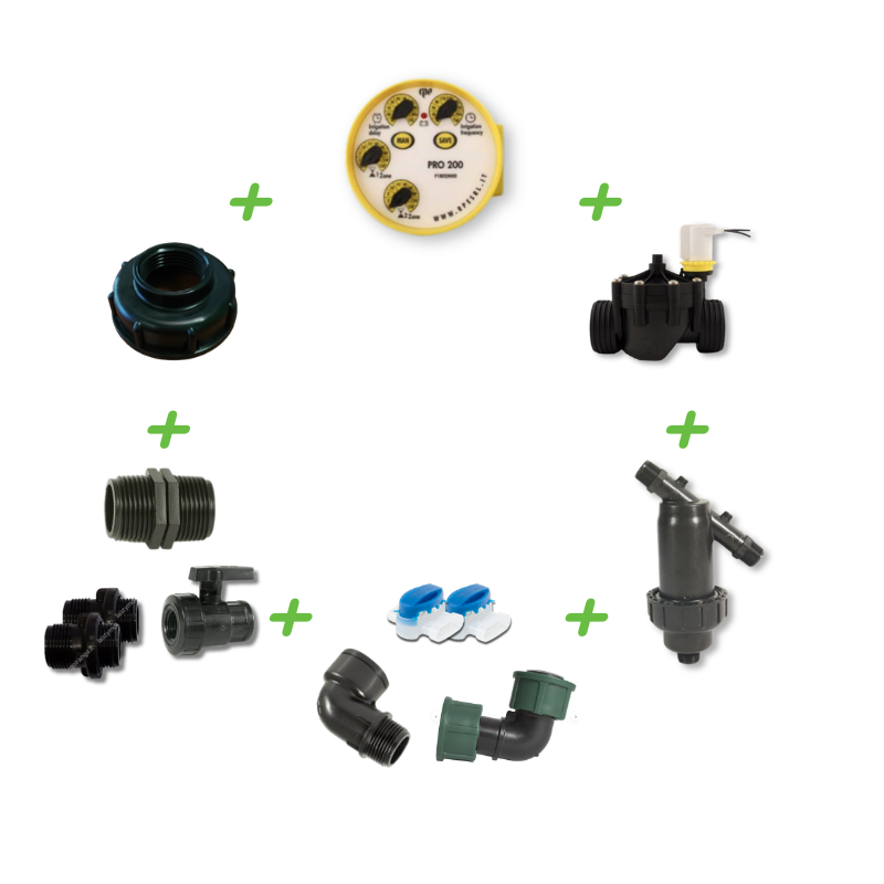 Gravitācijas laistīšanas komplekts no IBC tvertnes ir pilnīgs, profesionāls risinājums tiem, kuri vēlas automatizēt laistīšanu bez elektrotīkla pieslēguma un bez dārgiem montāžas darbiem. Komplekts ir veidots tā, lai visi komponenti precīzi saderētu savā starpā – nav nepieciešams meklēt atsevišķas daļas, pārbaudīt savietojamību vai tērēt laiku dažādu elementu saskaņošanai. Viss, kas nepieciešams, jau atrodas vienā iepakojumā.