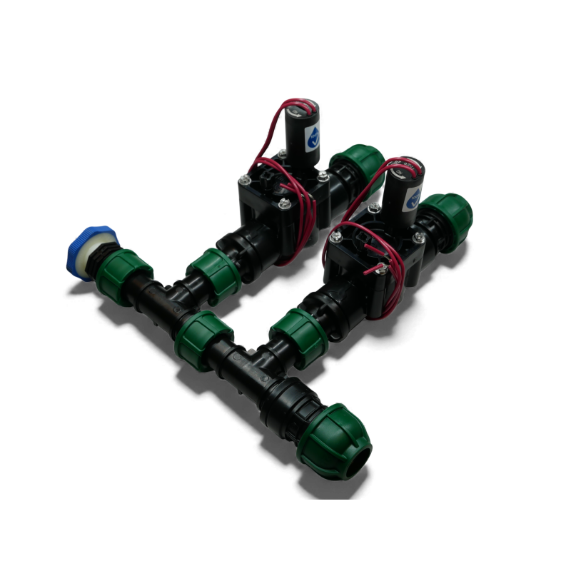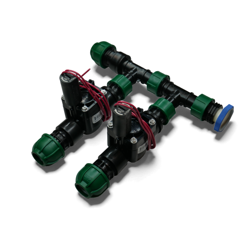 - Komplektu veido: elektromagnētiskie vārsti PGV 24 VAC, kolektora savienojumi, PP savienojumi, vītņotie savienojumi, drenāžas vārsts.