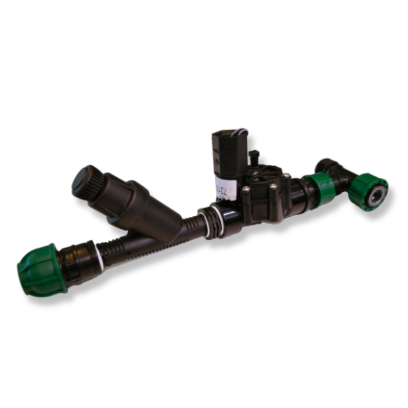 - Komplektā ietilpst: elektromagnētiskais vārsts Rain Bird 100-DV 24 VAC, PP savienojums, vītņu savienojums, kolektora savienojumi, tīkla filtrs ar spiediena regulatoru.