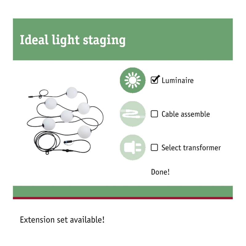 Vienkārši sakot: izvēloties Paulmann „Plug & Shine“, jūs iegūstat drošu un elastīgu āra apgaismojuma sistēmu, kas ir izturīga, viegli uzstādāma un ērti paplašināma vai maināma.