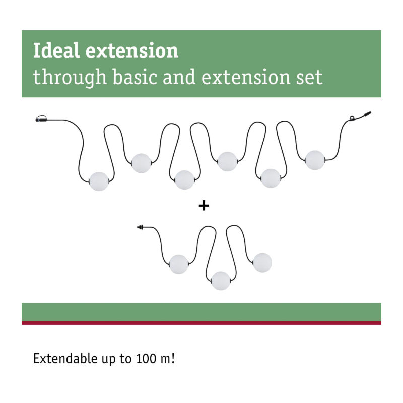 Šāda risinājuma dēļ ir viegli savienot vairākus gaismekļus vai piederumus bez sarežģītiem darbiem (kabeli var nebedzēt vai ielikt tikai dažus centimetrus zemē): Paulmann Plug & Shine tehnoloģija nodrošina īpašus ātrus savienotājus, kas parasti ļauj sistēmu paplašināt bez papildus pūlēm.