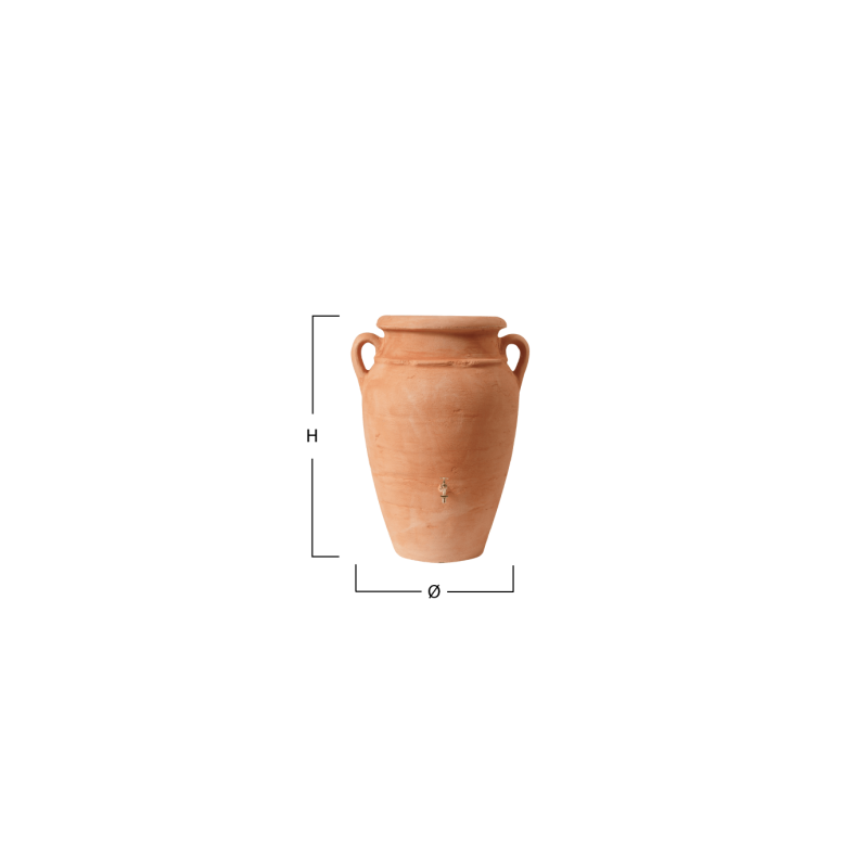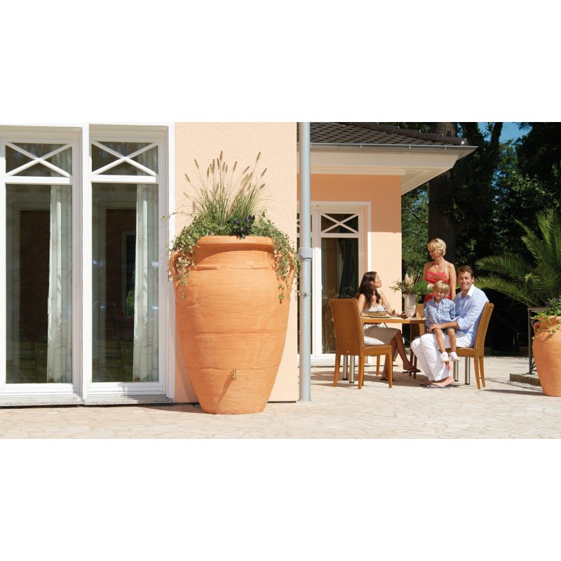 Эта ёмкость для дождевой воды, созданная по образцу древних амфор, станет не только практичным, но и эстетически привлекательным решением для вашего участка. Аутентичная форма придаёт индивидуальность, а верхнюю часть можно использовать как декоративный вазон – отличное место для растений и дополнительное украшение двора.