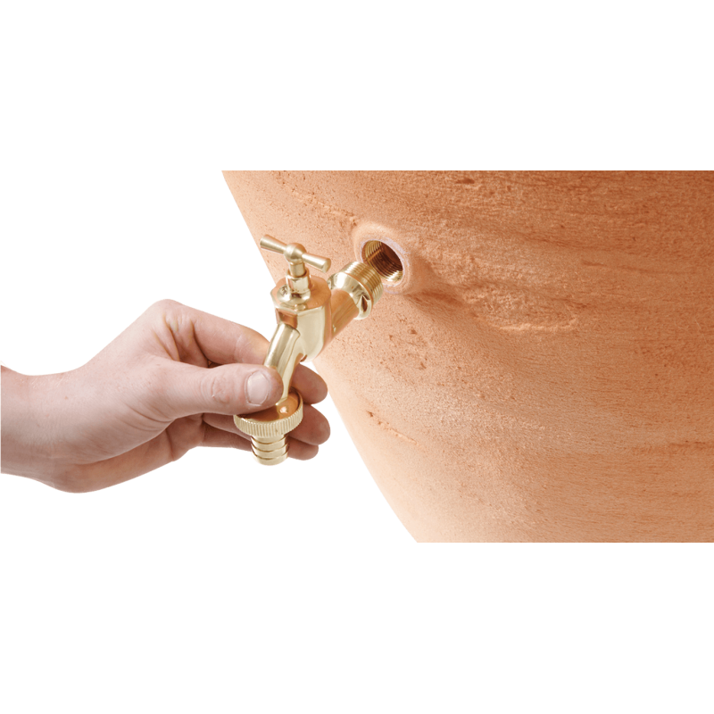 Латунный кран доступен отдельно, подходит ко всем декоративным резервуарам для дождевой воды Garantia®