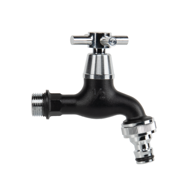 - Хромированный латунный черный садовый водяной кран ½“ нар. резь., с быстросъемным соединением