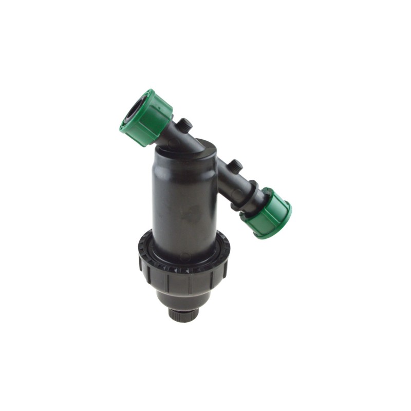 У этого фильтра есть специальная пробка для слива, которую можно заменить на вентиль - это создаёт функцию быстрой, но неполной промывки. Во время полива при открытии вентиля удаляется грязь, накопившаяся на фильтрующей кассете. Это улучшает работу фильтра и продлевает срок его службы.