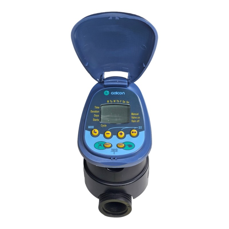 Galcon 7001D - это профессиональный и надежный таймер полива, предназначенный для управления одной зоной с интегрированным клапаном, что исключает необходимость в дополнительных клапанах или сложных монтажных решениях. Устройство работает от одной 9 В батареи (не входит в комплект), а съемный ЖК-дисплей позволяет легко устанавливать график полива и настраивать параметры по необходимости.