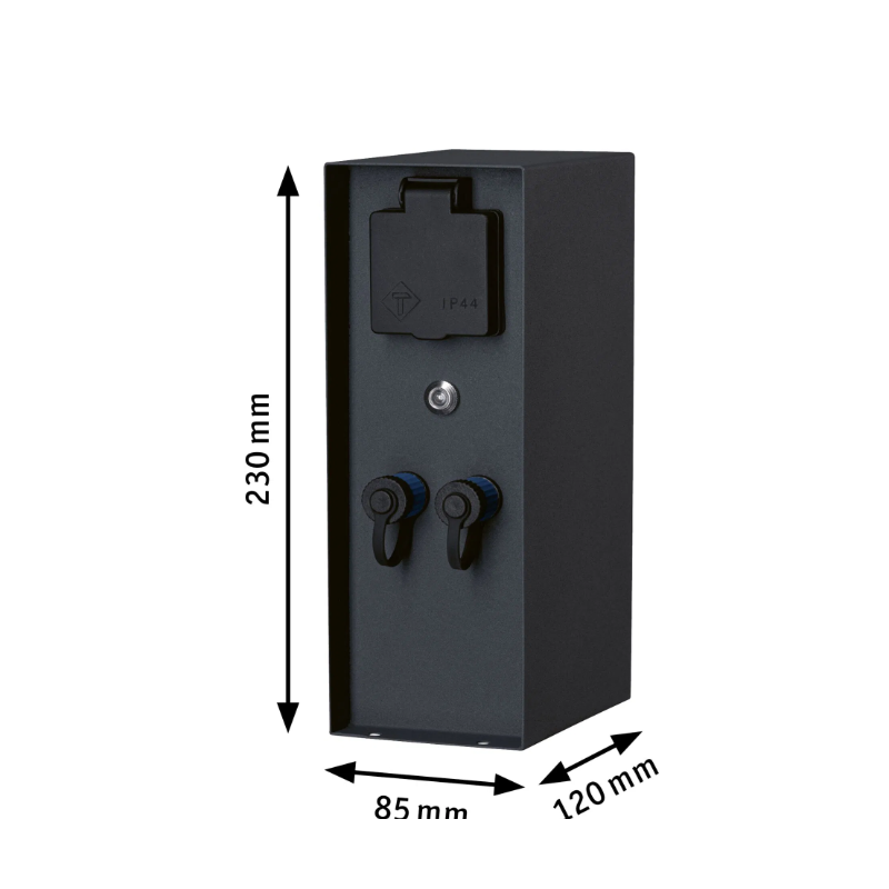- Эффективное распределение энергии: один столб с четырьмя розетками заменяет несколько отдельных точек и упрощает монтаж.