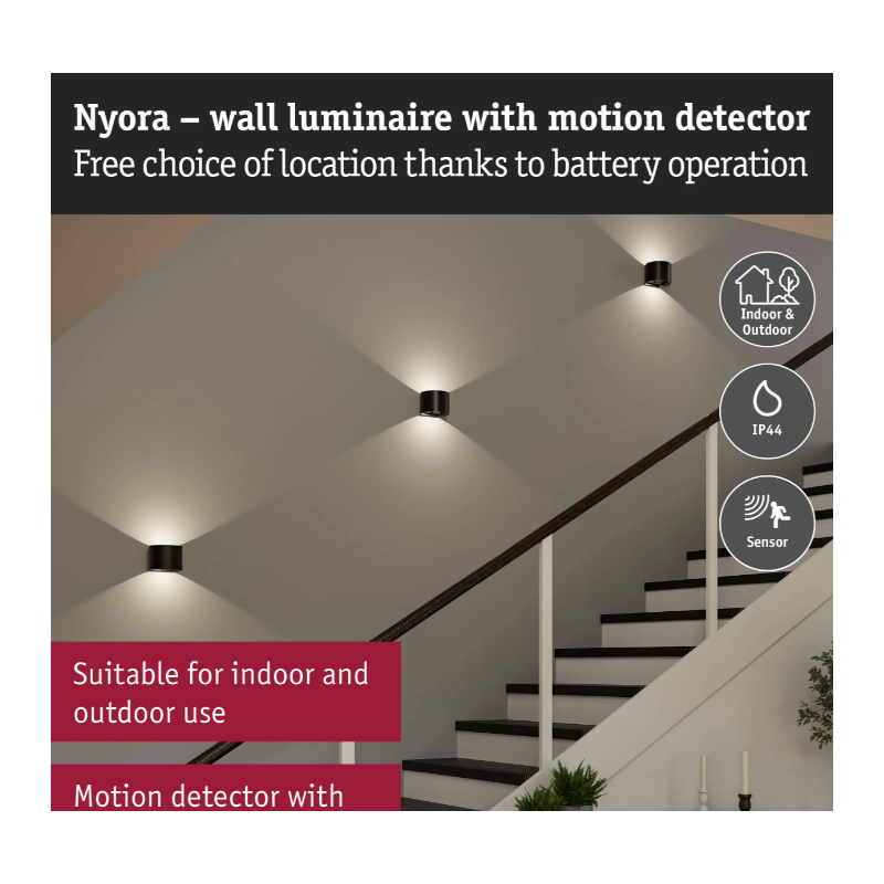 - Настенный аккумуляторный светильник "Nyora" с датчиком движения, чёрный