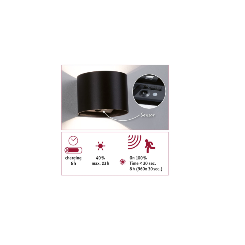 Настенный аккумуляторный светильник "Nyora" с датчиком движения, чёрный