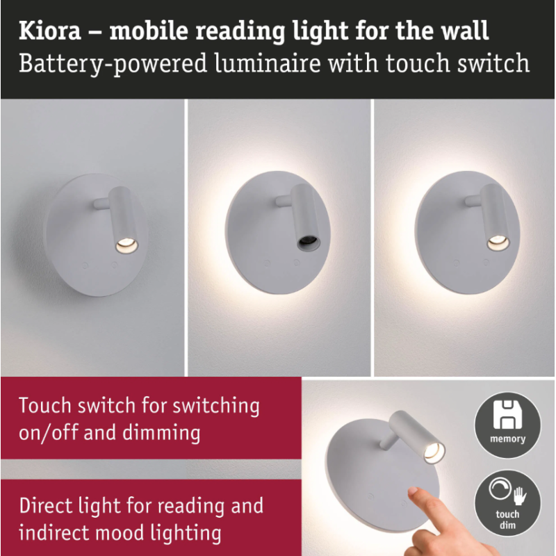 - Sienas akumulatora lampas Kiora ar sensoru, balta
