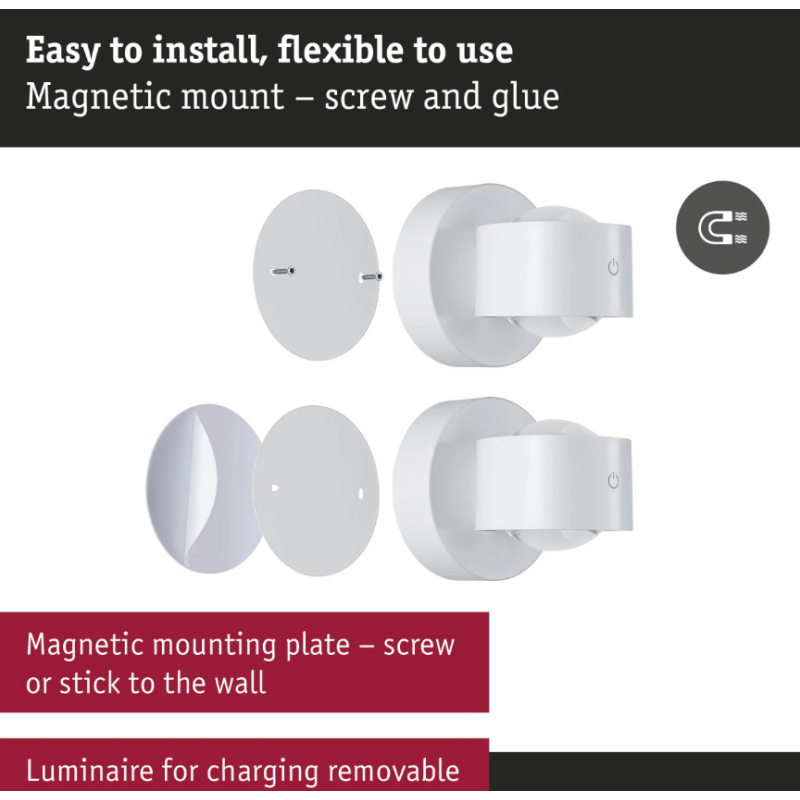 - Sienas akumulatora lampas Zorik ar sensoru, balta