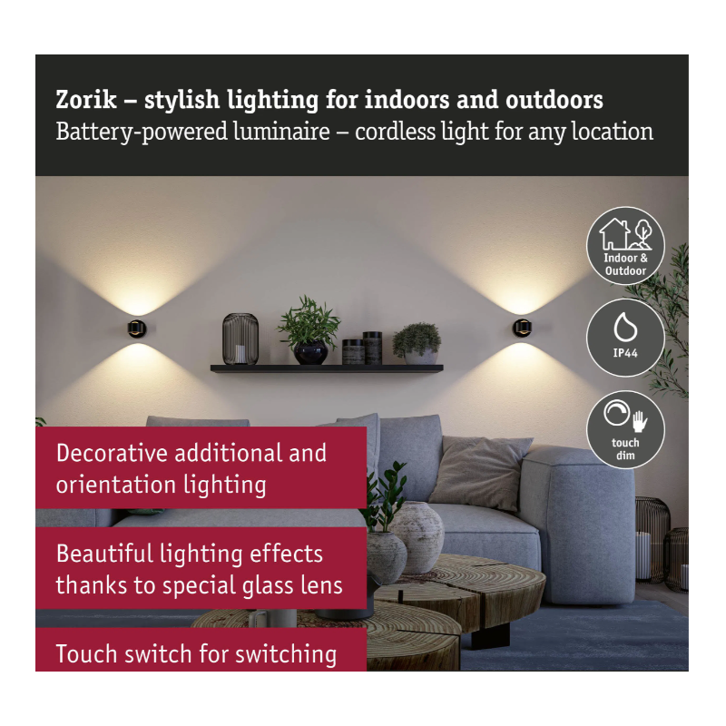 Sienas akumulatora lampas Zorik ar sensoru, melna
