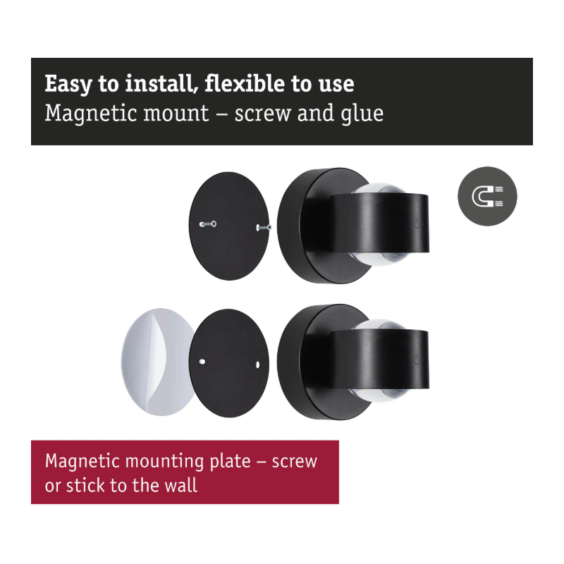 - Sienas akumulatora lampas Zorik ar sensoru, melna