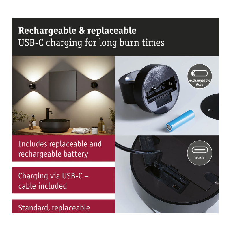 Uzlādējami gaismekļi ir praktisks un ekonomisks risinājums mājīgam un drošam apgaismojumam ārā bez elektroinstalācijas. Šie modernie LED gaismekļi darbojas ar integrētām baterijām, tāpēc tie lieliski piemēroti pagalmiem, dārziem un terasēm. Uzlādējamie āra gaismekļi ir izturīgi pret mitrumu, ilgmūžīgi un ļoti energoefektīvi. Autonomā darbība ļauj apgaismot arī vietas, kur parastie apgaismojuma risinājumi nav pieejami.