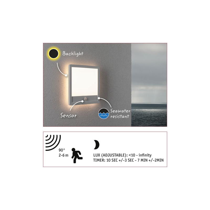 - Sienas gaismeklis Lamina Backlight 14,5W ar kustības sensoru, kvadrātveida, baltā krāsā