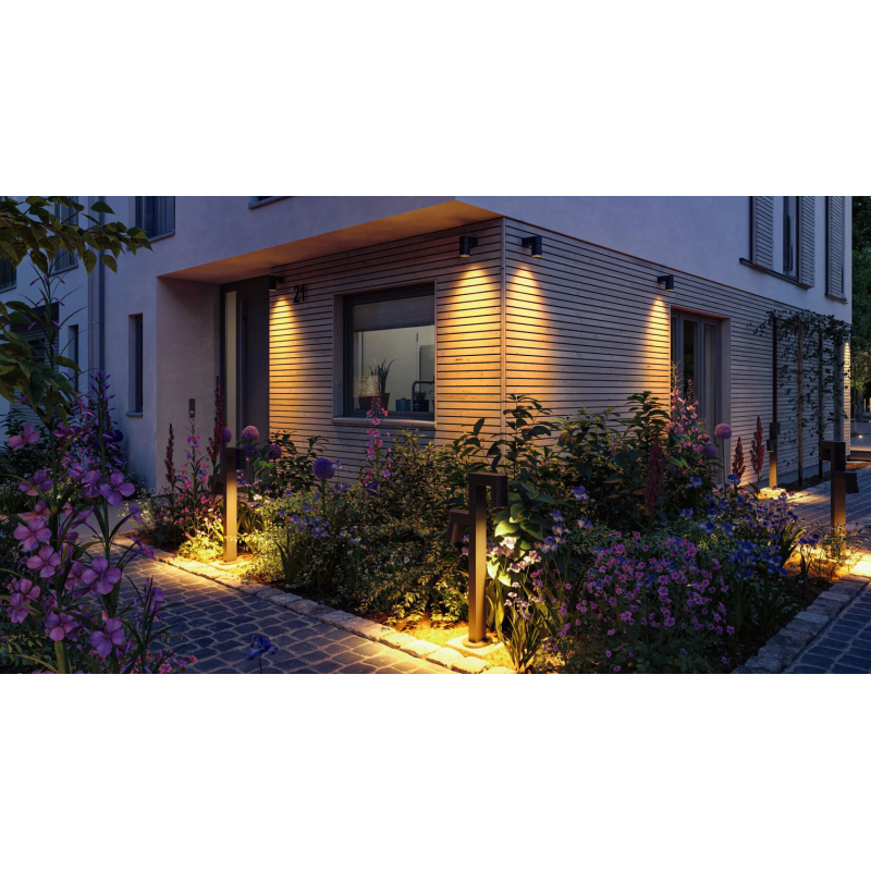 Paulmann 230 V āra apgaismojums - uzticams un universāls risinājums mājas fasādes un pagalma ārējā apgaismojuma vajadzībām. Tas tiek pieslēgts tieši pie standarta 230 V tīkla, tāpēc nav nepieciešami papildu transformatori vai sarežģītas vadu sistēmas. Šie gaismekļi lieliski piemēroti fasāžu, terasu, celiņu un dārzu apgaismošanai, uzlabojot drošību, funkcionalitāti un estētiku ap māju.
