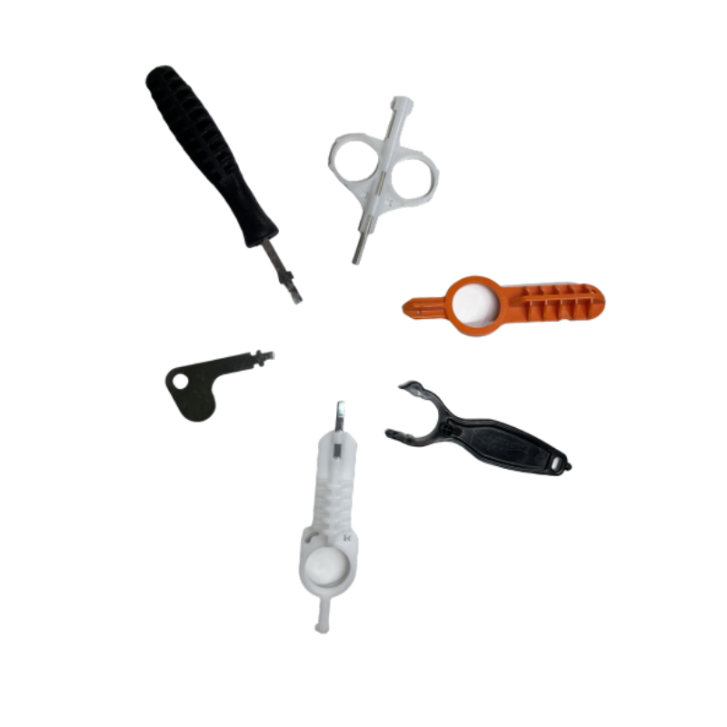 Universāls atslēgu komplekts, kurā atradīsiet visus nepieciešamos instrumentus izlecošo laistīšanas sprinkleru montāžai, regulēšanai un apkopei. Komplektā ietilpst sešas dažādas atslēgas, kas piemērotas darbam ar pasaulē populārāko ražotāju – Toro, K-Rain, Hunter, Irritrol un Rain Bird – sprinkleriem.