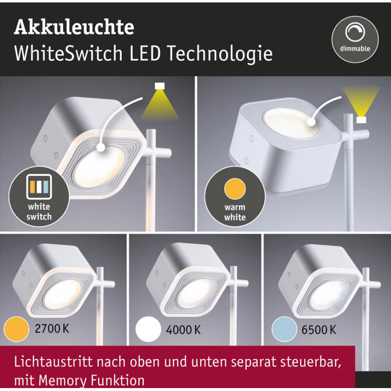 - Krāsu temperatūra: 2700 K - 6500 K (no silti baltas līdz dienasgaismas baltai)